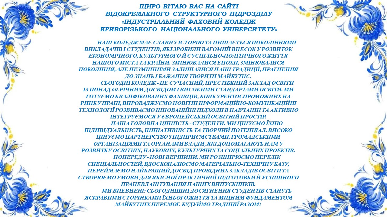 14 жовтня 2025 року ми відзначали визначну подію – 60-річчя нашого коледжу. Це ювілей, що поєднує минуле, сьогодення і майбутнє, адже за цими роками – долі людей, історія поколінь та тисячі успішних життєвих шляхів. 60 років тому було закладено фундамент нашого коледжу, що став осередком знань, професійного становлення та духовного зростання для молоді району, міста та за його межами. За цей час наш коледж випустив більше 15000 фахівців, які працюють в різних галузях і прославляють рідну alma mater у місті, регіоні та за межами України. Наших випускників знають в Афганістані, Кубі, Монголії та країнах Африки. Але справжня сила коледжу – це люди. Наші мудрі й віддані викладачі, які щодня відкривають студентам шлях у професію. Наші студенти – енергійні, талановиті, сповнені ідей та мрій. Наші випускники, які досягли успіху й завжди залишаються частиною великої родини коледжу. І, звичайно, наші співробітники, які дбають, щоб життя закладу було гармонійним і сучасним. Сьогодні ми з гордістю озираємося назад і з упевненістю дивимося вперед. Попереду – нові виклики й нові можливості. переконані, що разом ми збережемо традиції та створимо ще більше причин для гордості. Від щирого серця дякую всім, хто причетний до цієї великої історії! Бажаю кожному міцного здоров’я, наснаги, миру й добробуту. З ювілеєм, рідний коледж! Нехай попереду буде ще багато славних років і звершень!